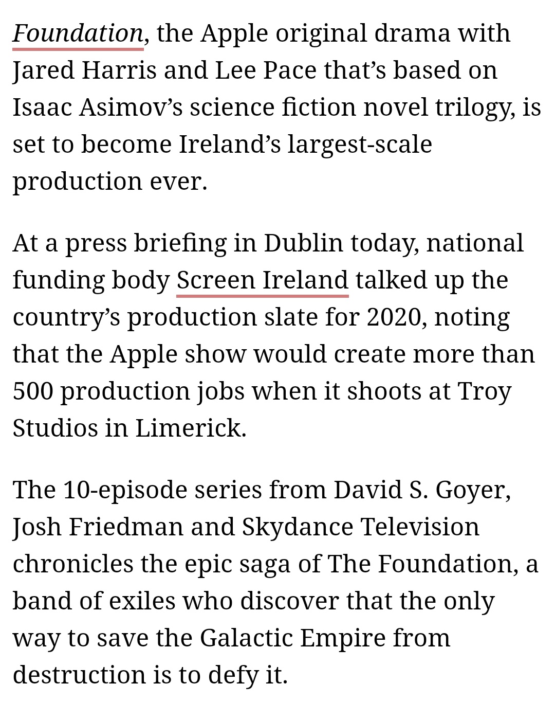 Lee Pace Italy Al Twitter Apple Series Foundation Set To Be Ireland S Largest Ever Production Via Deadline Https T Co Xl7iksldg2 Leepace Jaredharris Foundation Appletv Isaacasimov Https T Co Y2xer87y3c Twitter